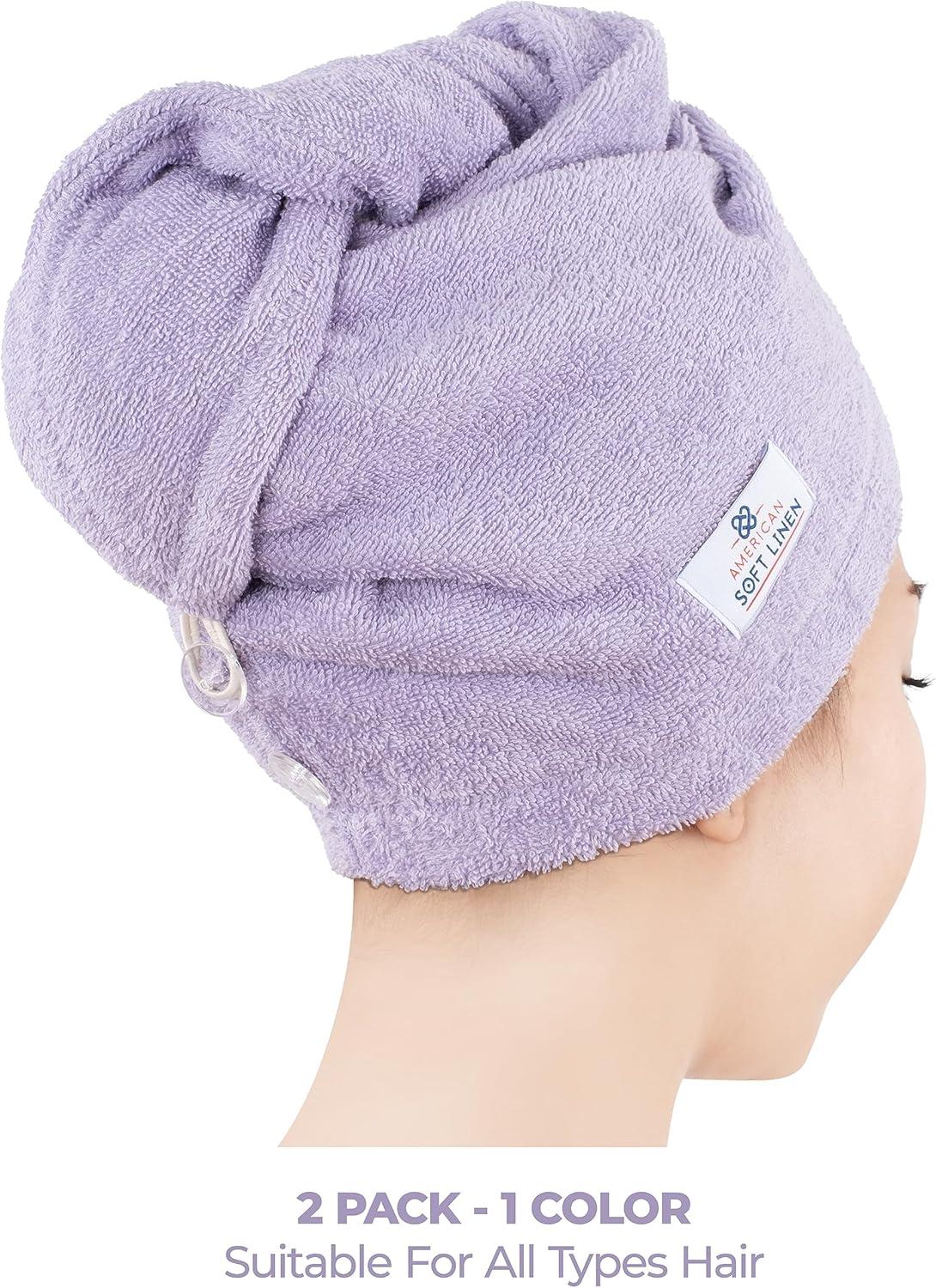 Don’t wait, get up to 50% off on American Soft Linen 100% Cotton Hair Towels for Women, Head Towel Cap, Cotton Hair Turban Towel Wrap for Long Curly Anti Frizz Hair, Soft and Absorbent Cotton Hair Towels 2 Pack, White(Lilac) during our end-of-season sale event.