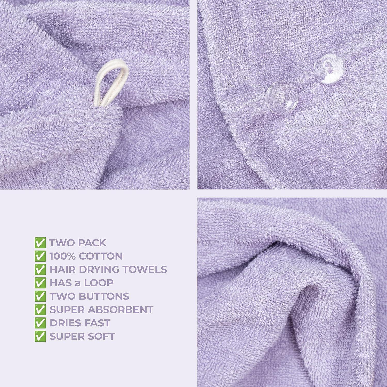 American Soft Linen 100% Cotton Hair Towels for Women, Head Towel Cap, Cotton Hair Turban Towel Wrap for Long Curly Anti Frizz Hair, Soft and Absorbent Cotton Hair Towels 2 Pack, White(Lilac)