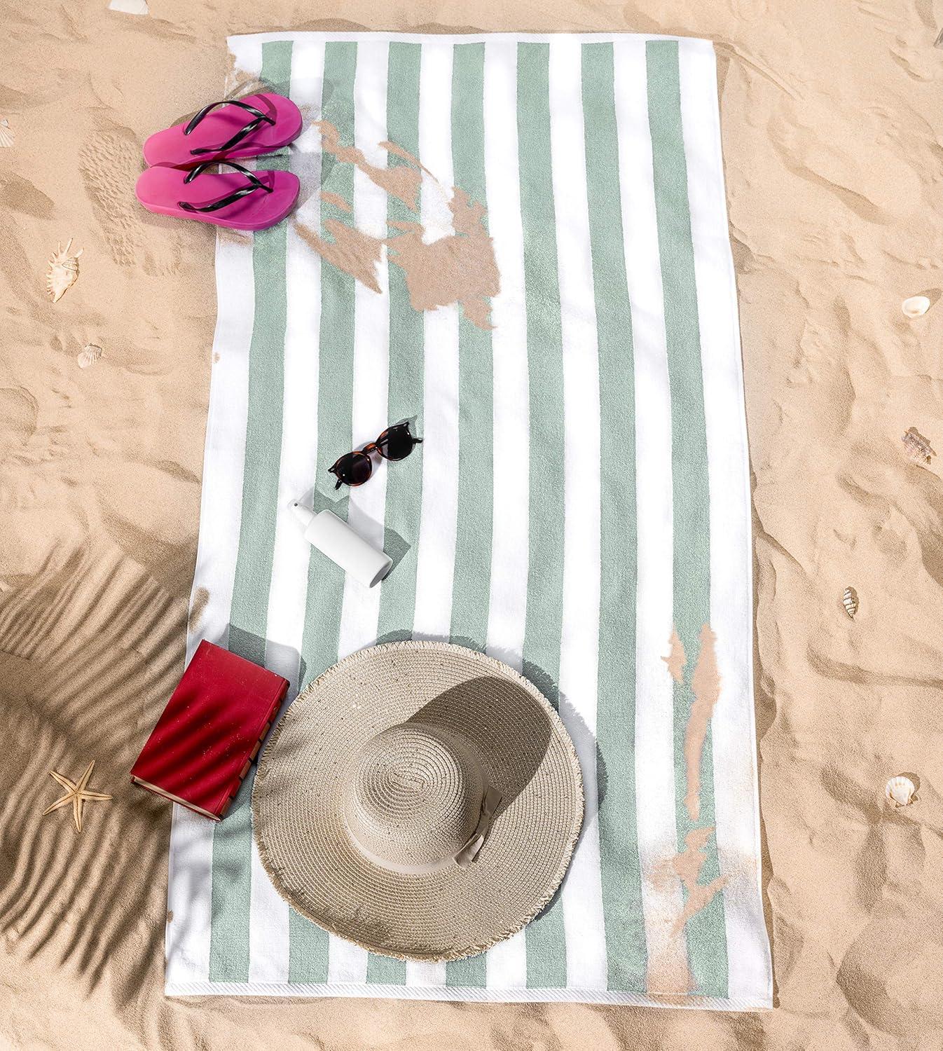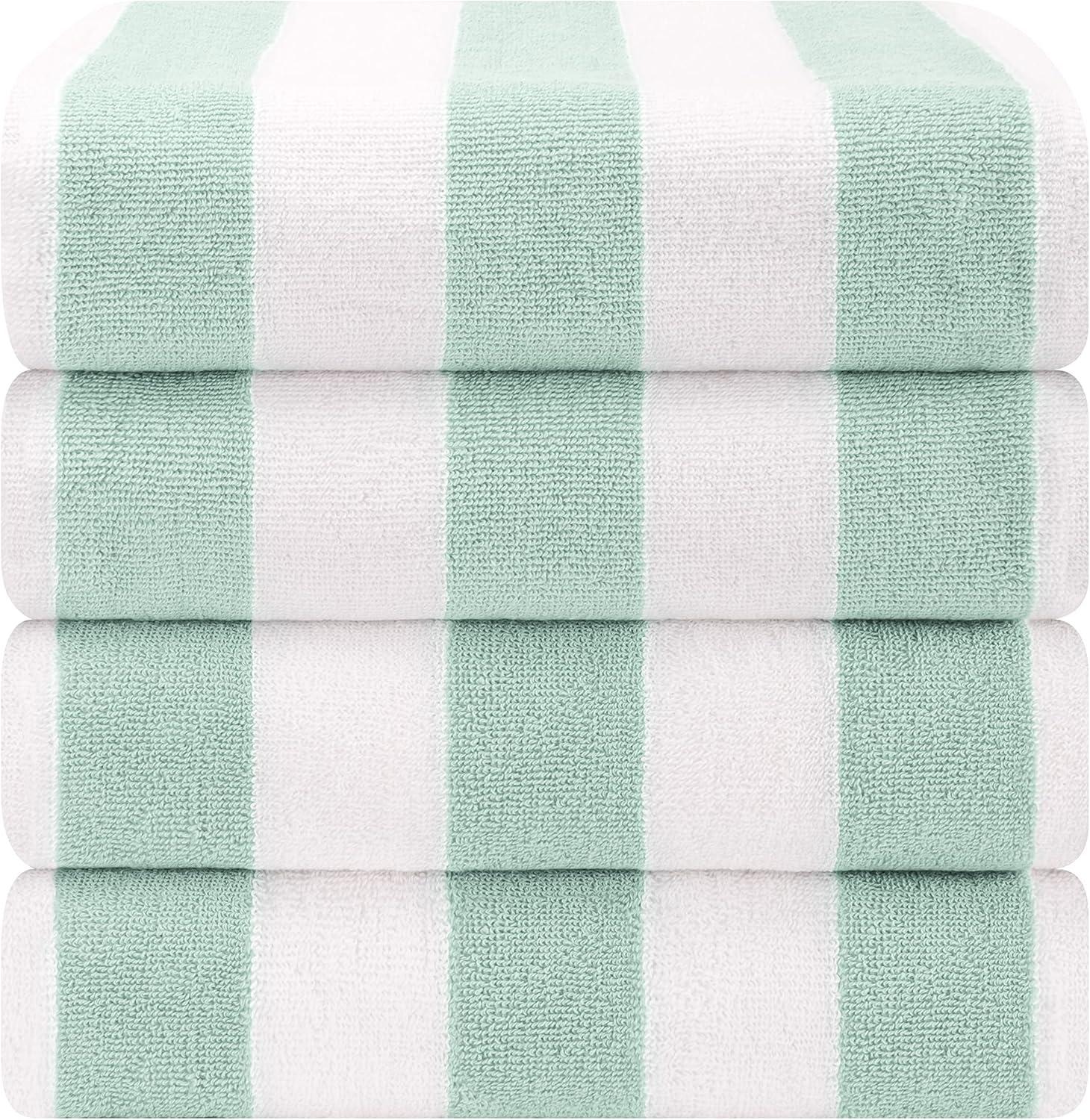 American Soft Linen Cabana Striped Beach Towels, 30×60 inch 4 Piece Oversize Pool Towels, Quick Drying Sand Free Swim Towels, Mint Green(Green)