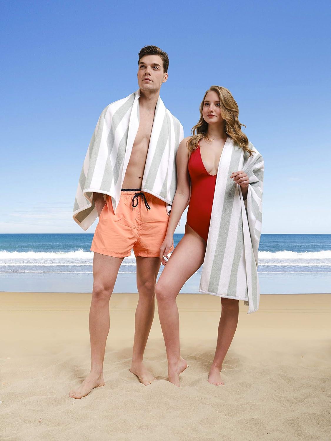 American Soft Linen Premium Quality 4 Piece Cabana Striped Beach Towels
