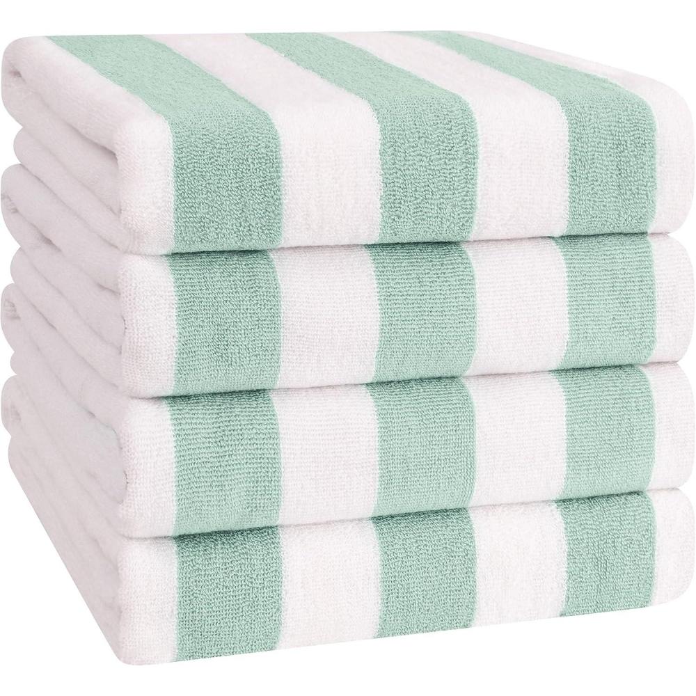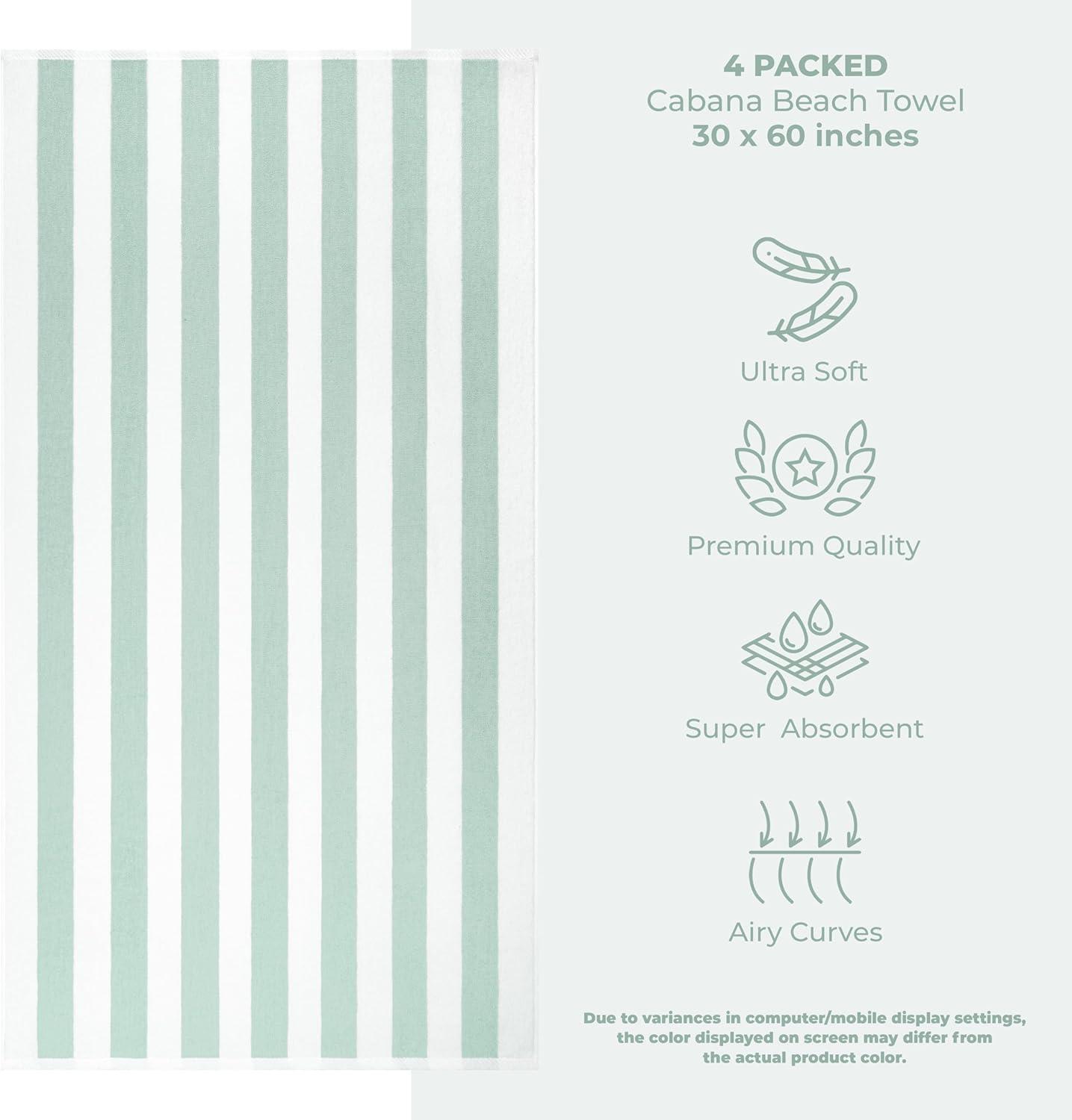 American Soft Linen Cabana Striped Beach Towels, 30×60 inch 4 Piece Oversize Pool Towels, Quick Drying Sand Free Swim Towels, Mint Green(Mix Color)