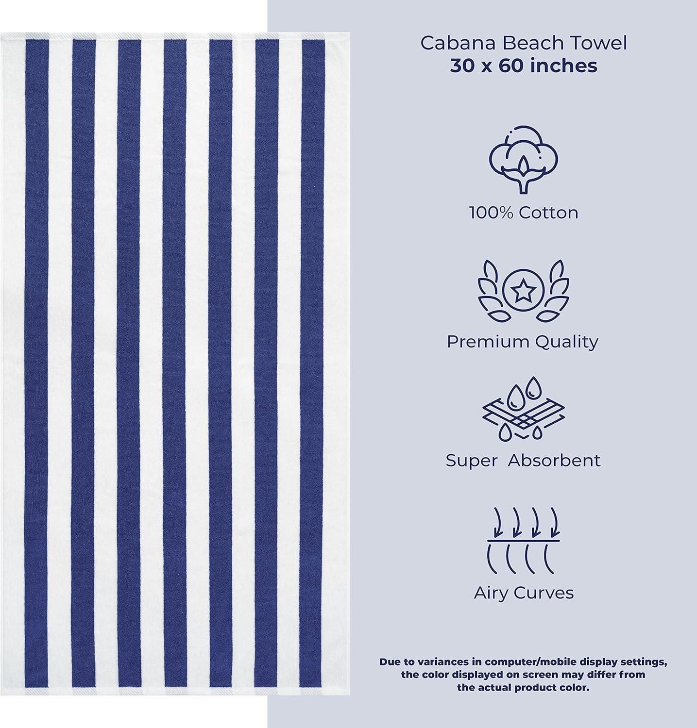 American Soft Linen Cabana Striped Beach Towels, 30x60 inch 4 Piece Oversize Pool Towels, Quick Drying Sand Free Swim Towels, Moss Green(Navy Blue)