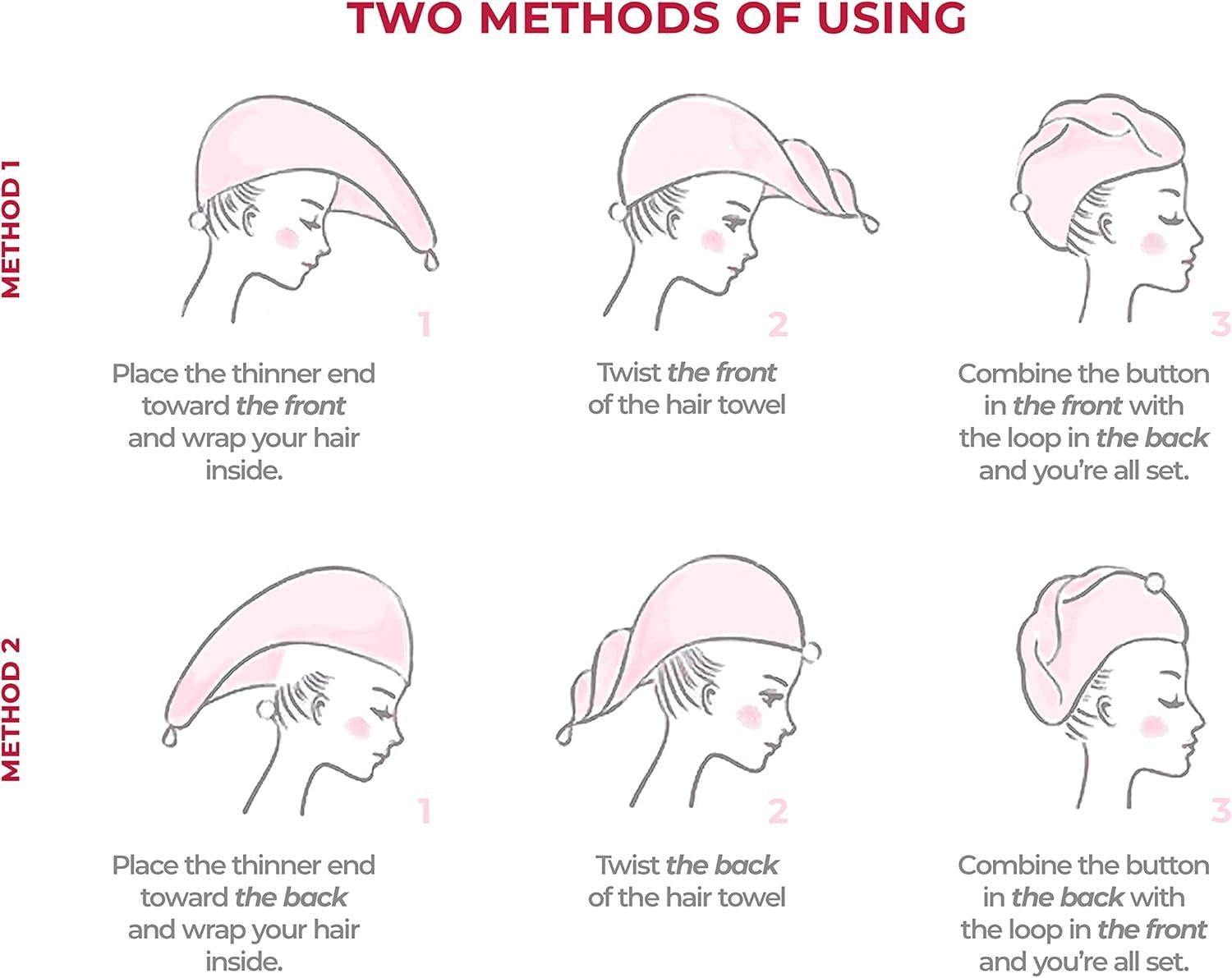 ✅ A lightweight, perfectly fitted hair turban towel wrap. There are no readjustments and no slippage. Your hands stay free and you can make up, sleep or move about without interruption.