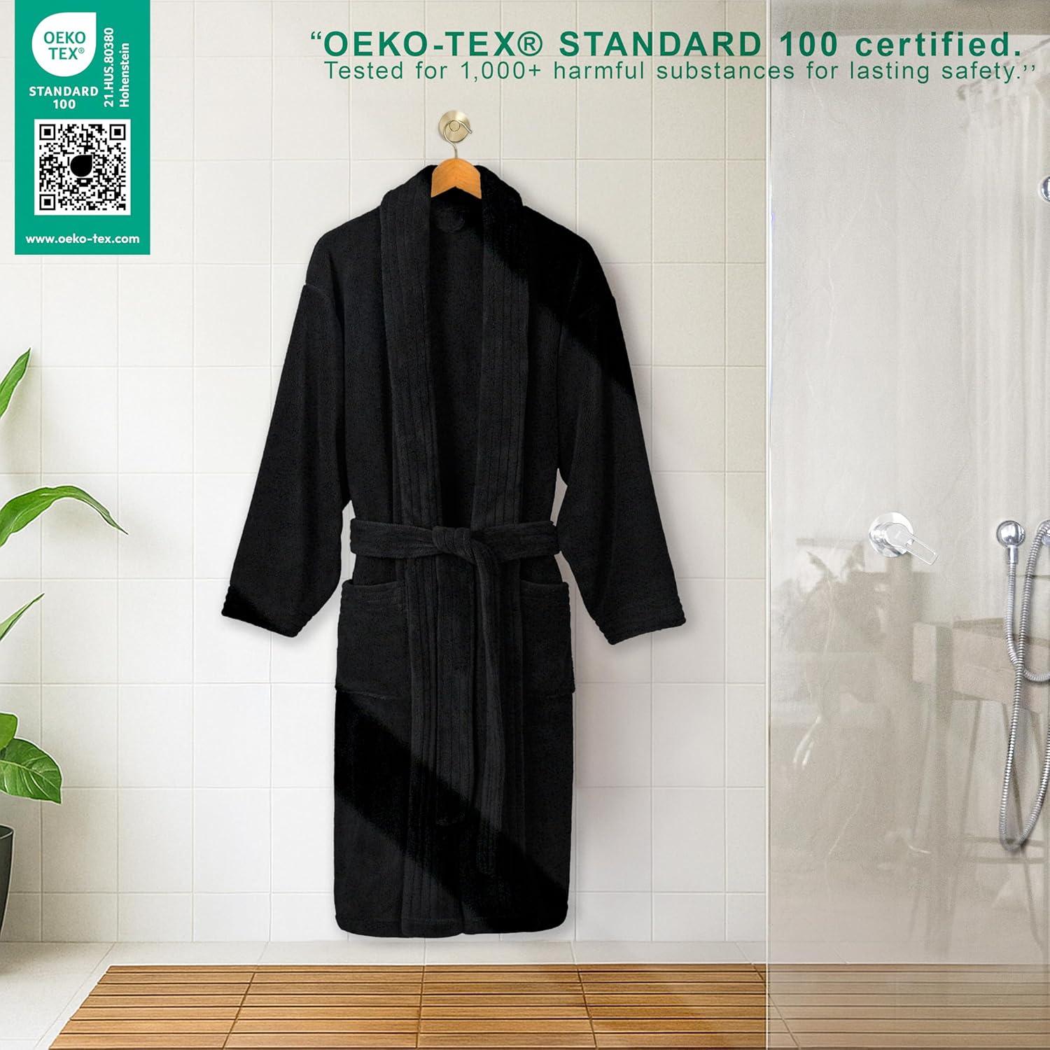 American Soft Linen Luxury Men’s Fleece Bathrobe Soft Warm Lightweight Plush Robe for Men Cozy Absorbent Spa Hotel Quality(Black)