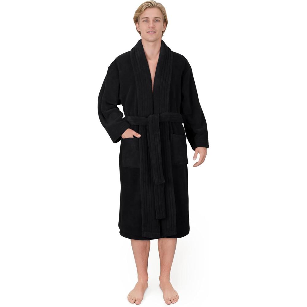 Experience ultimate comfort, warmth, and luxury with the American Soft Linen Men’s Fleece Bathrobe — soft, plush, and absorbent, designed for men who value quality and coziness. Crafted from premium fleece fabric, this lightweight robe brings spa and hotel comfort straight to your home. Soft, Warm & Plush: Made from high-quality fleece, this men’s robe feels gentle and soothing on the skin. The fluffy texture provides instant warmth after a shower or a long day, keeping you cozy during cold mornings or relaxing evenings. Spa & Hotel Quality: Enjoy the feel of a five-star spa every day. The dense yet lightweight design offers perfect absorbency and breathability, making it ideal for home, spa, or travel. Warm in winter, airy in summer — perfect all year long. Functional & Stylish: Featuring a classic shawl collar, adjustable belt, and two large front pockets for your essentials. Reinforced stitching ensures durability, while the elegant look adds timeless style to your loungewear. Perfect Fit for Every Man: Available in 6 sizes — Small, Medium, Large, X-Large, 2X-Large, 3X-Large, offering comfort for all body types from slim to plus-size. The relaxed fit allows freedom of movement and full coverage. Elegant Colors: Choose from 7 stylish shades — White, Dark Gray, Teal, Beige, Red, Black, and Navy Blue. Each color stays bright and elegant wash after wash, maintaining its premium look. Easy Care & Long-Lasting: Machine washable, durable, and easy to maintain. This fleece bathrobe remains soft, plush, and vibrant even after repeated washes. Safe & Skin-Friendly: OEKO-TEX Standard 100 certified and tested for harmful substances, ensuring safety, comfort, and peace of mind. Perfect Gift: An ideal gift for husbands, fathers, or friends. Soft, warm, and stylish — a spa-quality robe that delivers lasting comfort and luxury every day.