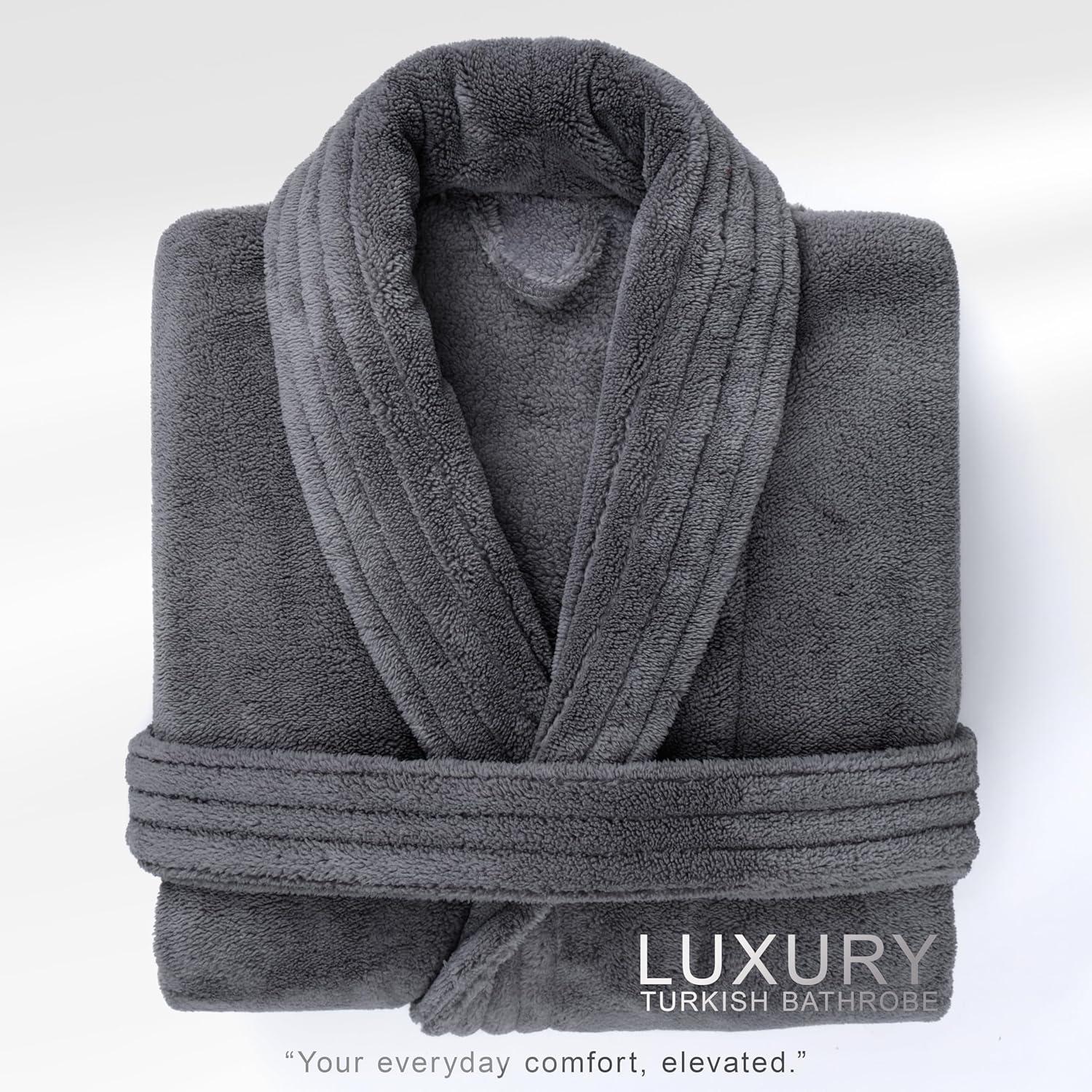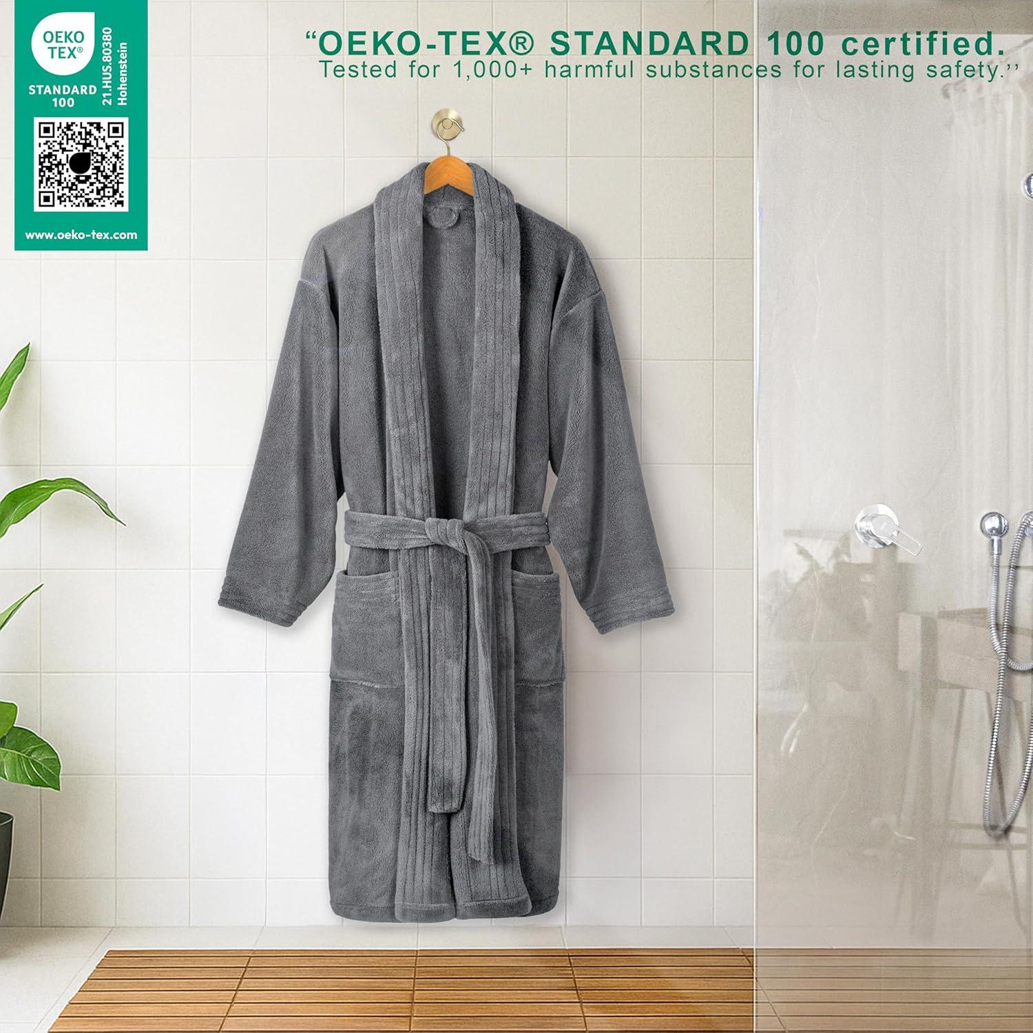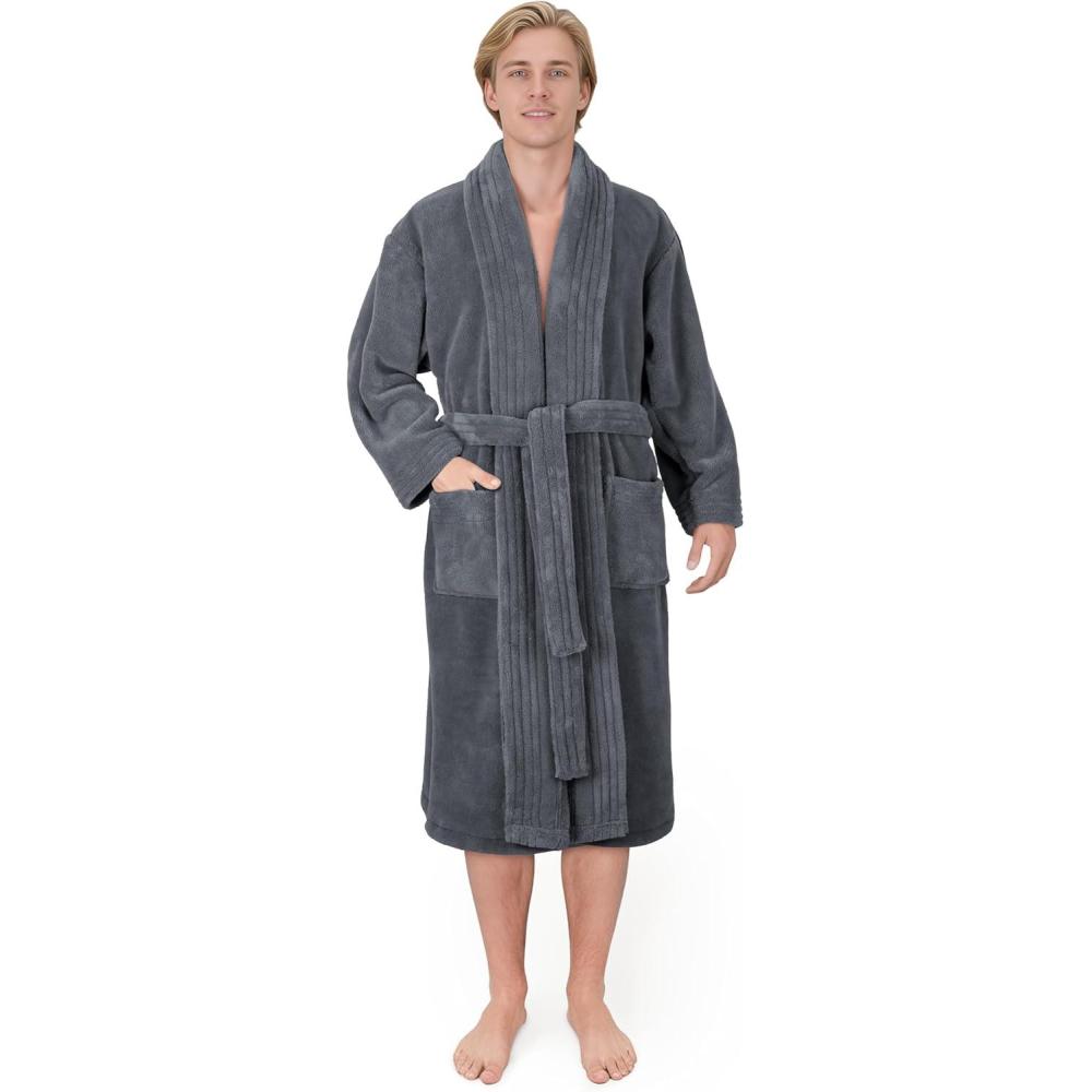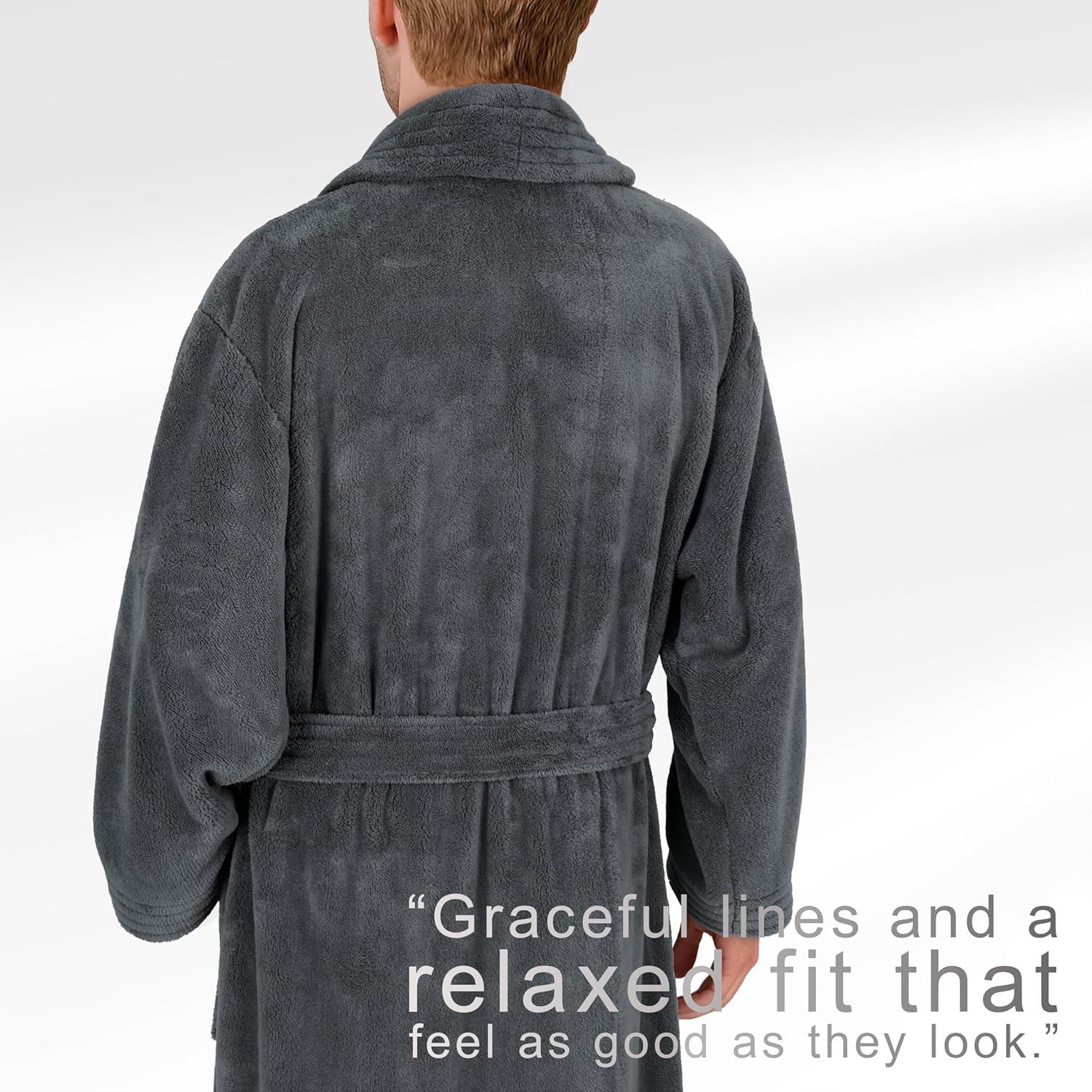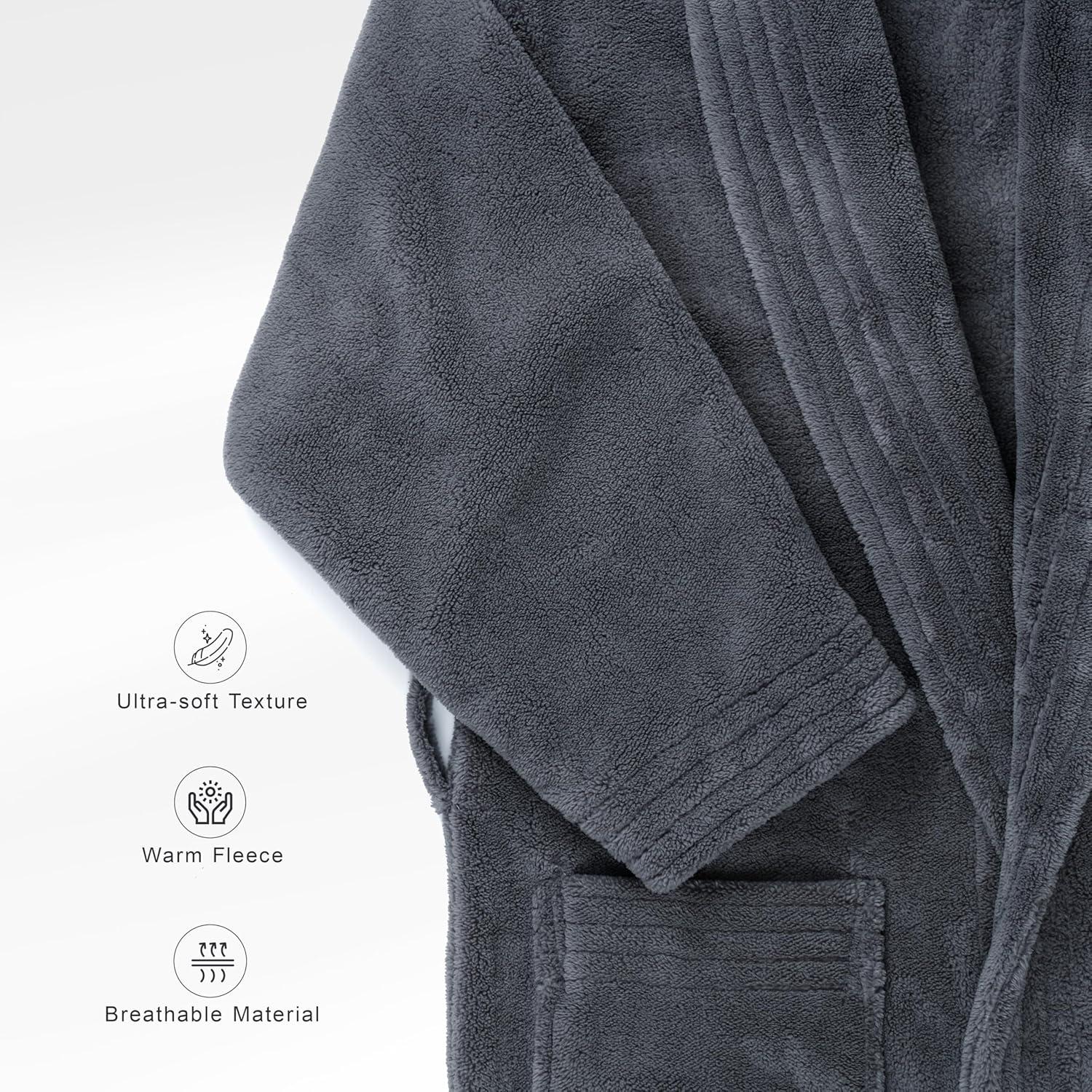 American Soft Linen Luxury Men’s Fleece Bathrobe Soft Warm Lightweight Plush Robe for Men Cozy Absorbent Spa Hotel Quality(Dark Gray)