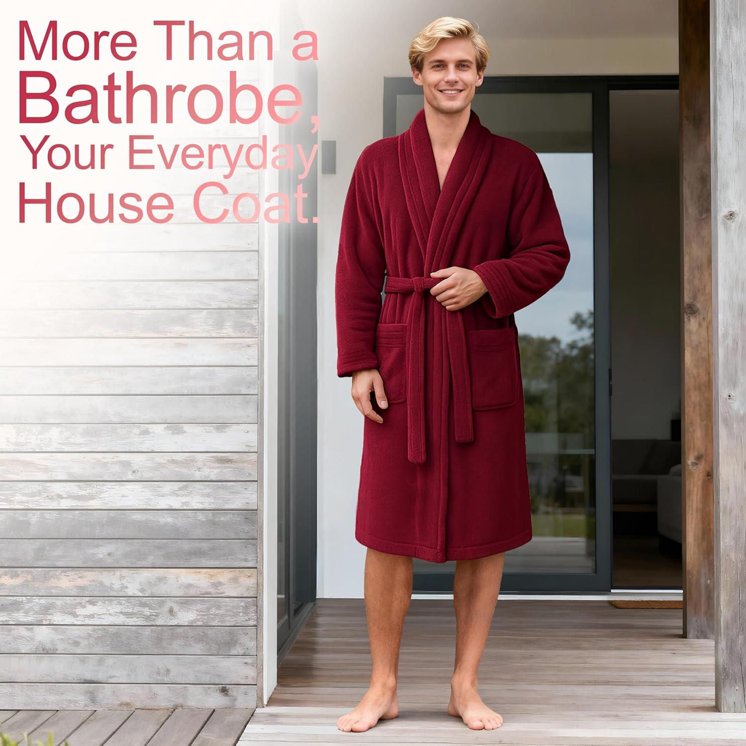 Experience ultimate comfort, warmth, and luxury with the American Soft Linen Men’s Fleece Bathrobe — soft, plush, and absorbent, designed for men who value quality and coziness. Crafted from premium fleece fabric, this lightweight robe brings spa and hotel comfort straight to your home. Soft, Warm & Plush: Made from high-quality fleece, this men’s robe feels gentle and soothing on the skin. The fluffy texture provides instant warmth after a shower or a long day, keeping you cozy during cold mornings or relaxing evenings. Spa & Hotel Quality: Enjoy the feel of a five-star spa every day. The dense yet lightweight design offers perfect absorbency and breathability, making it ideal for home, spa, or travel. Warm in winter, airy in summer — perfect all year long. Functional & Stylish: Featuring a classic shawl collar, adjustable belt, and two large front pockets for your essentials. Reinforced stitching ensures durability, while the elegant look adds timeless style to your loungewear. Perfect Fit for Every Man: Available in 6 sizes — Small, Medium, Large, X-Large, 2X-Large, 3X-Large, offering comfort for all body types from slim to plus-size. The relaxed fit allows freedom of movement and full coverage. Elegant Colors: Choose from 7 stylish shades — White, Dark Gray, Teal, Beige, Red, Black, and Navy Blue. Each color stays bright and elegant wash after wash, maintaining its premium look. Easy Care & Long-Lasting: Machine washable, durable, and easy to maintain. This fleece bathrobe remains soft, plush, and vibrant even after repeated washes. Safe & Skin-Friendly: OEKO-TEX Standard 100 certified and tested for harmful substances, ensuring safety, comfort, and peace of mind. Perfect Gift: An ideal gift for husbands, fathers, or friends. Soft, warm, and stylish — a spa-quality robe that delivers lasting comfort and luxury every day.