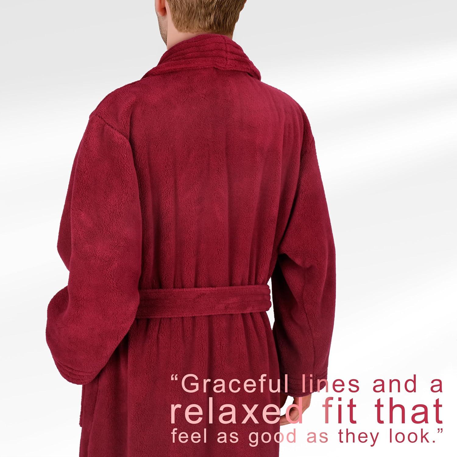 American Soft Linen Luxury Men’s Fleece Bathrobe Soft Warm Lightweight Plush Robe for Men Cozy Absorbent Spa Hotel Quality(Red)