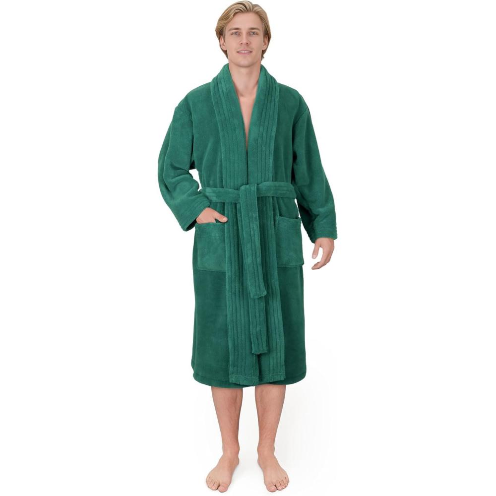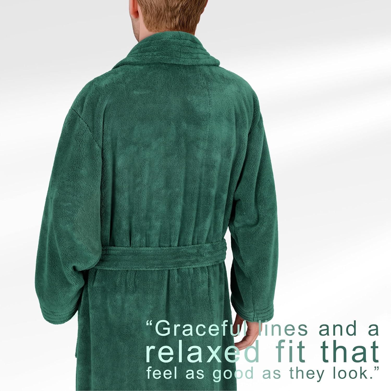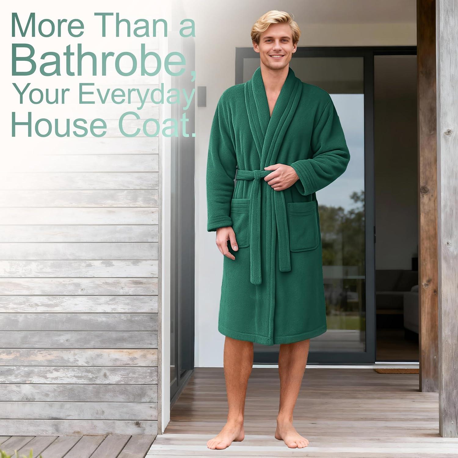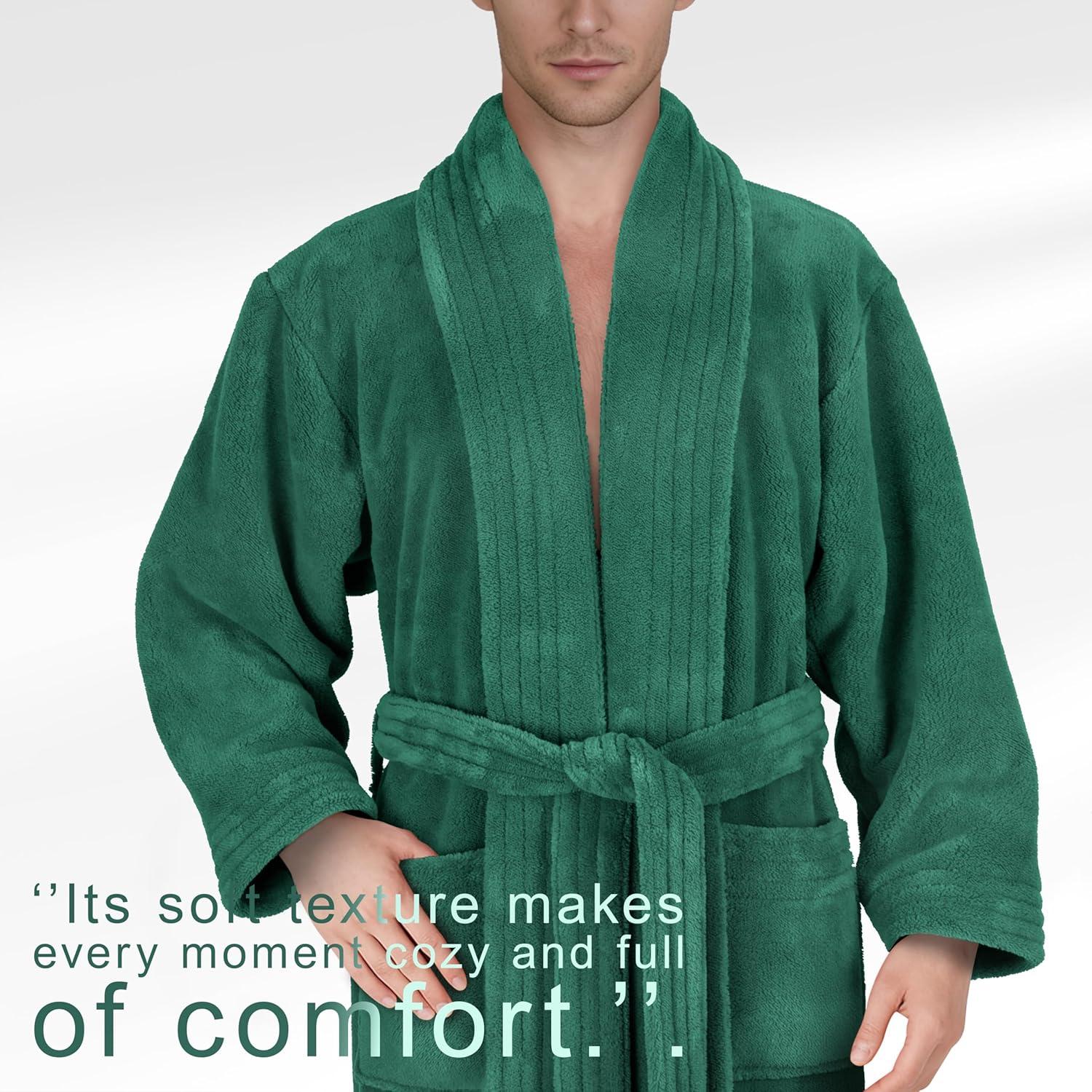 American Soft Linen Luxury Men’s Fleece Bathrobe Soft Warm Lightweight Plush Robe for Men Cozy Absorbent Spa Hotel Quality(Teal)