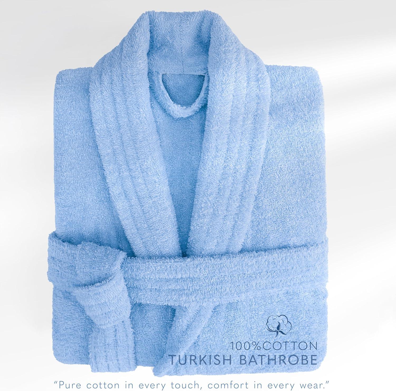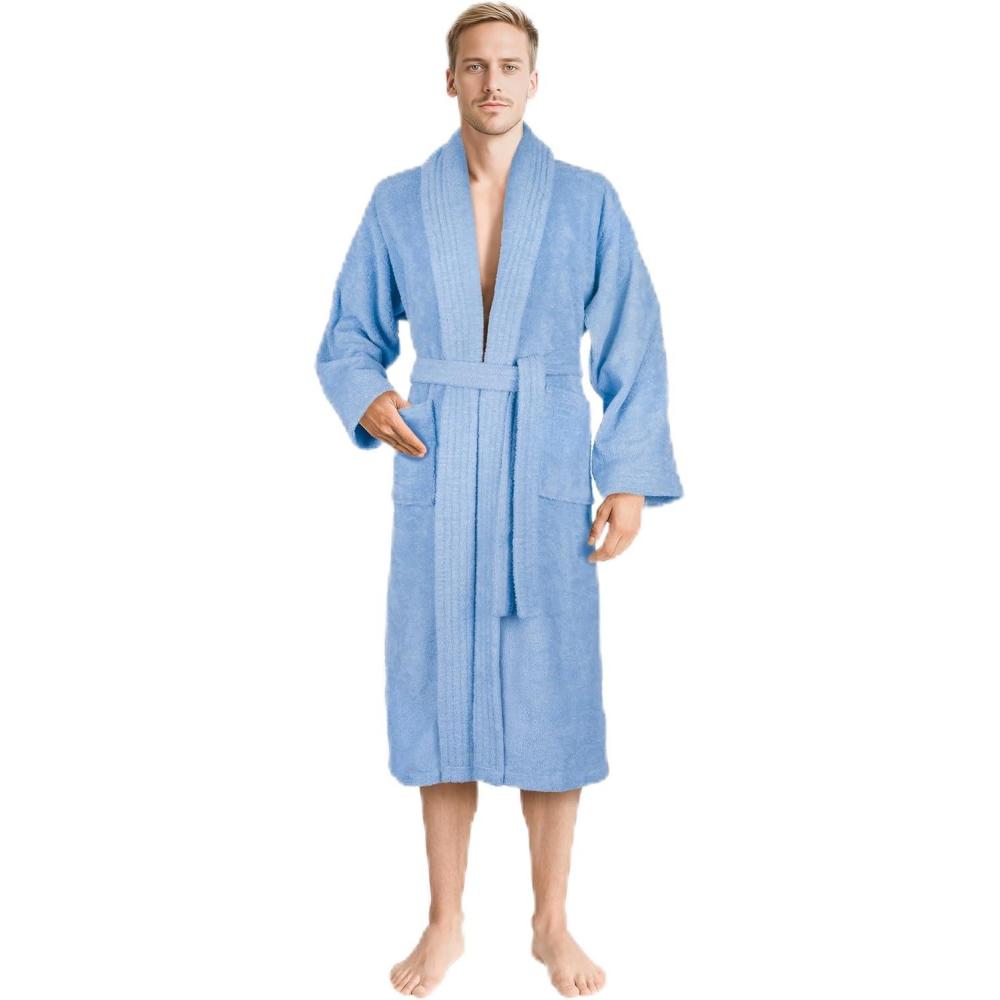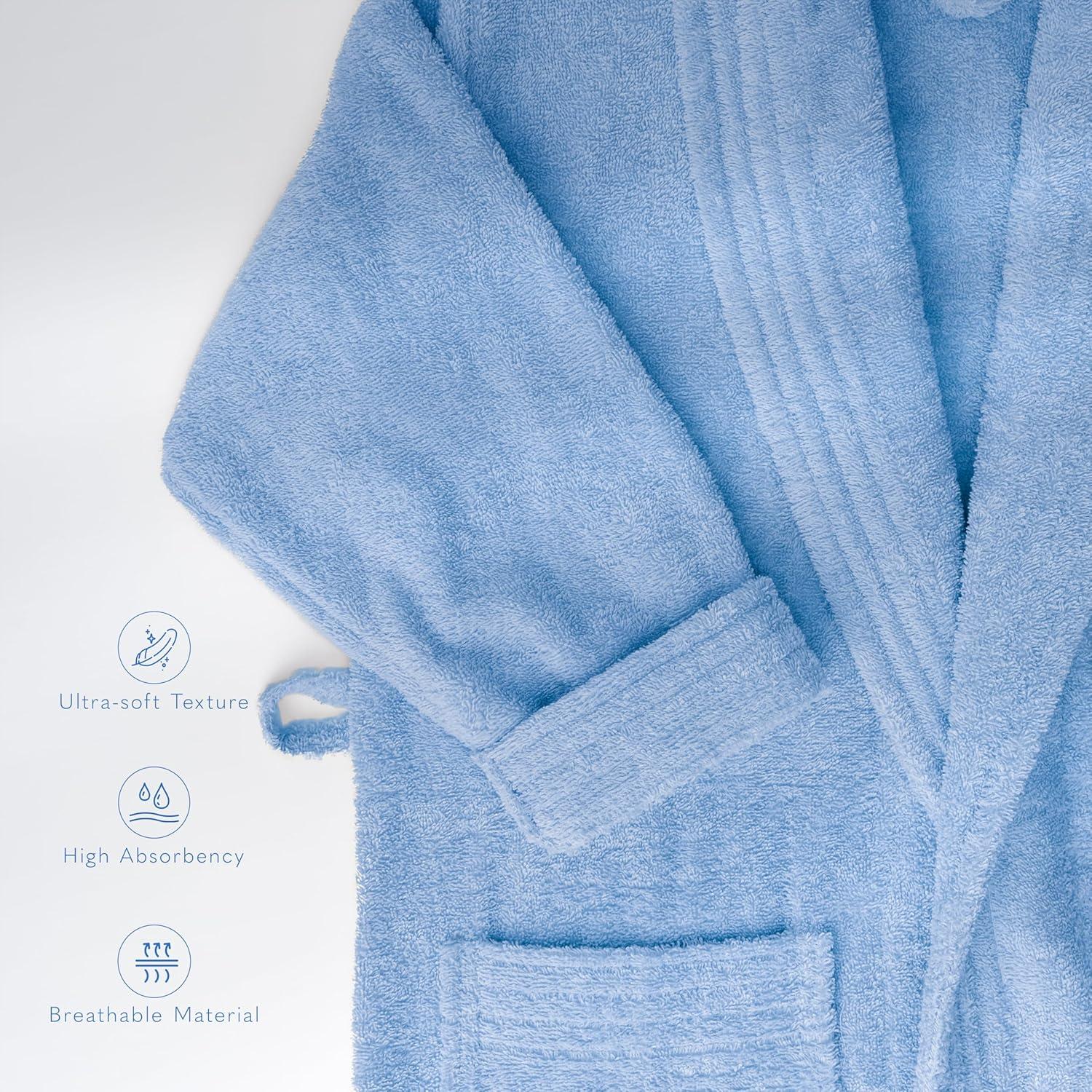 American Soft Linen Men’s 100% Cotton Terry Bathrobe – Soft, Absorbent, Quick Dry Turkish Robe for Men(Light Blue)