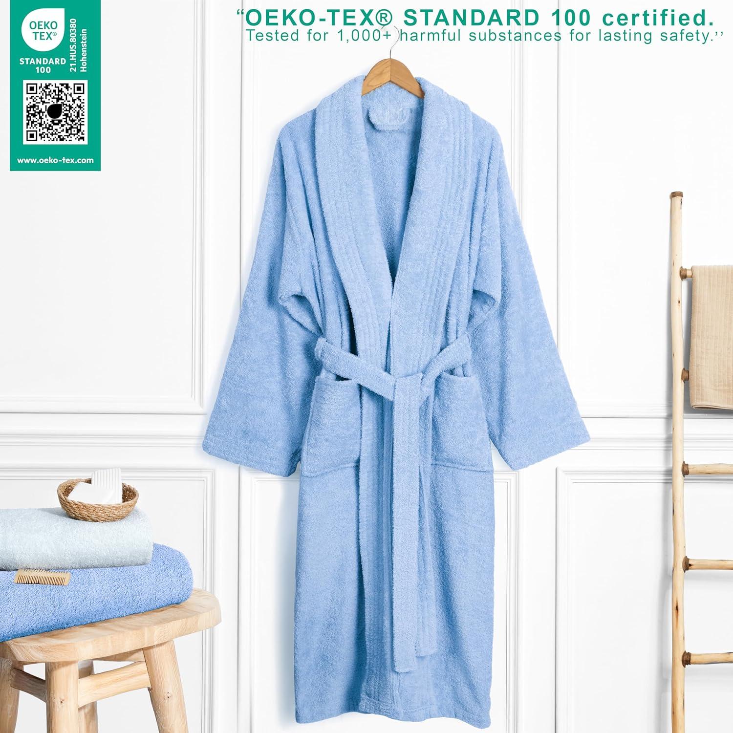 Experience ultimate relaxation with the American Soft Linen Men’s 100% Cotton Terry Bathrobe, designed for men who value comfort, quality, and style. Made from luxurious premium natural cotton, this soft and absorbent robe feels like a five-star hotel spa experience at home. The shawl collar design, adjustable belt, and convenient pockets combine functionality with timeless elegance. Its quick-dry, breathable fabric keeps you warm and comfortable after every shower or during relaxed mornings. Available in six inclusive sizes (S to 3X-Large), this men’s cotton bathrobe offers the perfect fit for every body type. Whether you’re lounging at home, getting ready for the day, or winding down after work, this robe brings unmatched softness and durability. (Small – Medium – Large – XLarge – 2XLarge – 3XLarge) OEKO-TEX Standard 100 certificated and tested for harmful substances. Make every moment of comfort a statement of style with American Soft Linen — where luxury meets everyday relaxation.