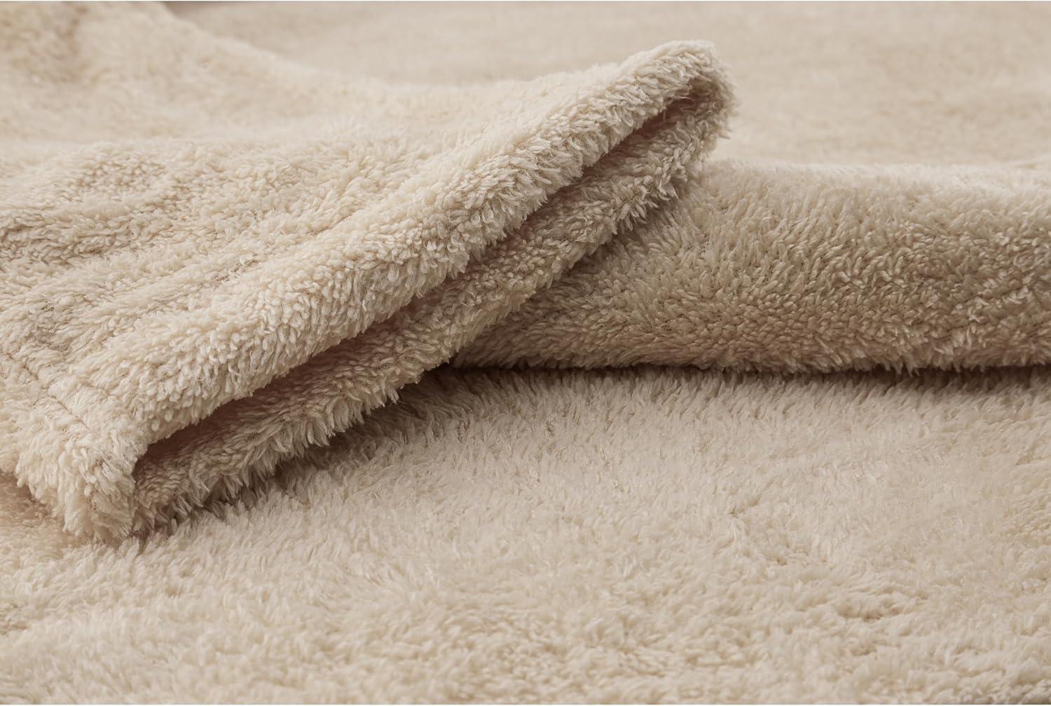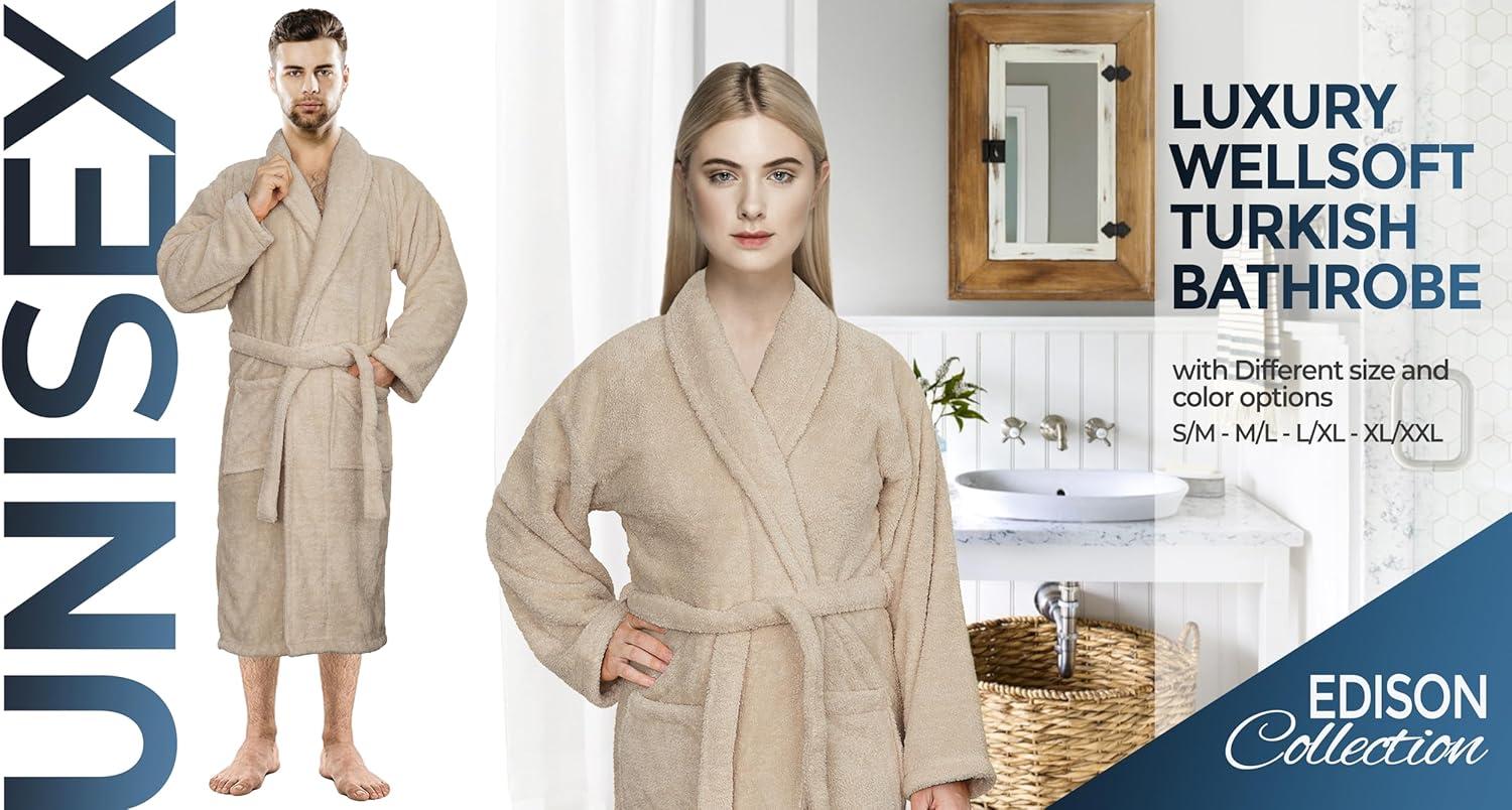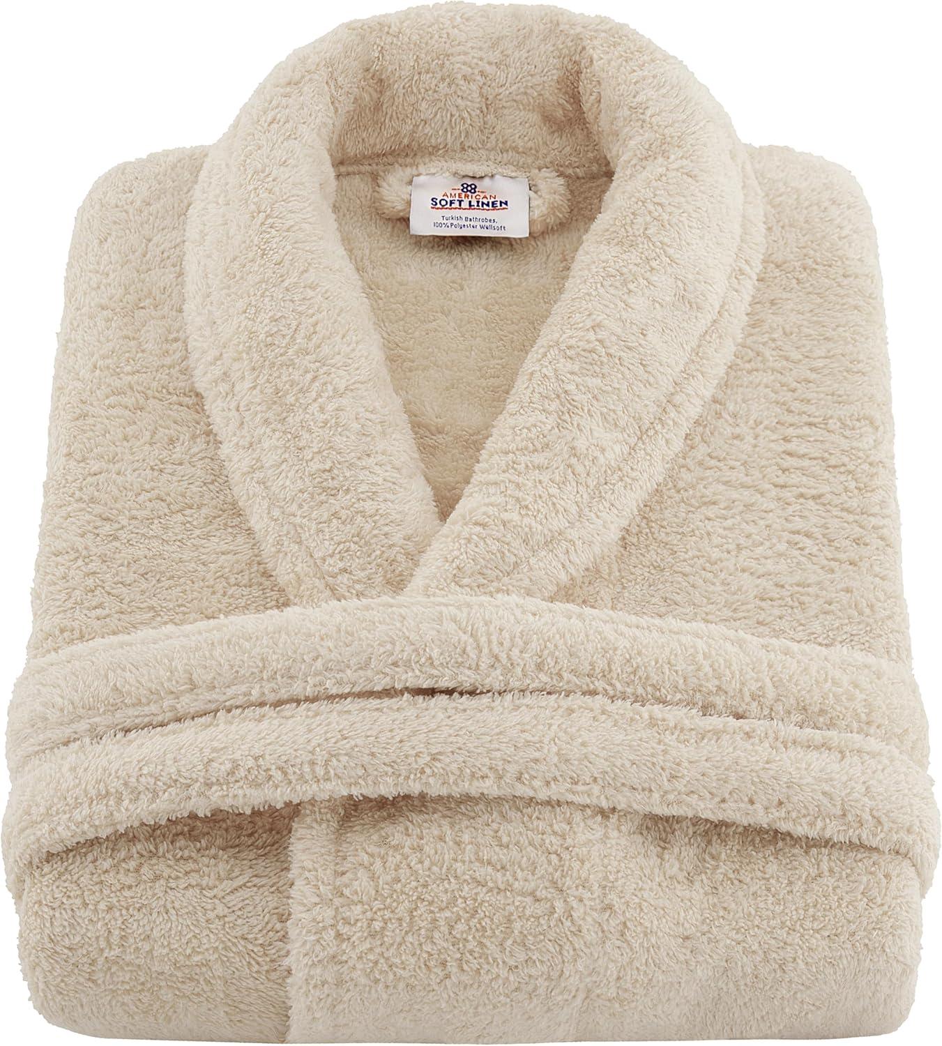 American Soft Linen Warm Fleece Robe, Mens and Womens Robe Fuzzy, 1 Piece Unisex Plush Adult Bathrobe for Bathroom(Beige)