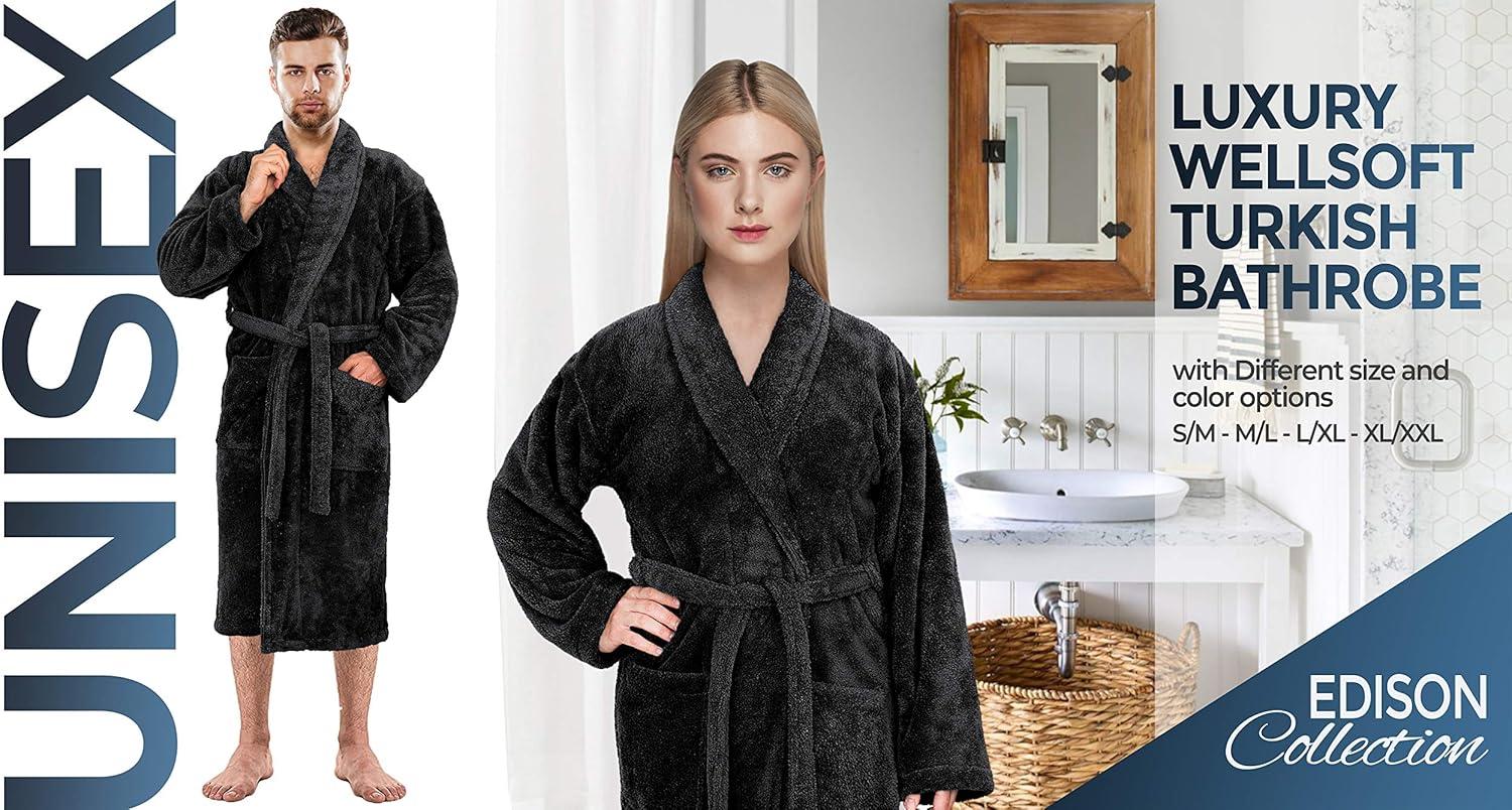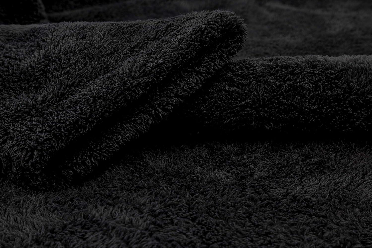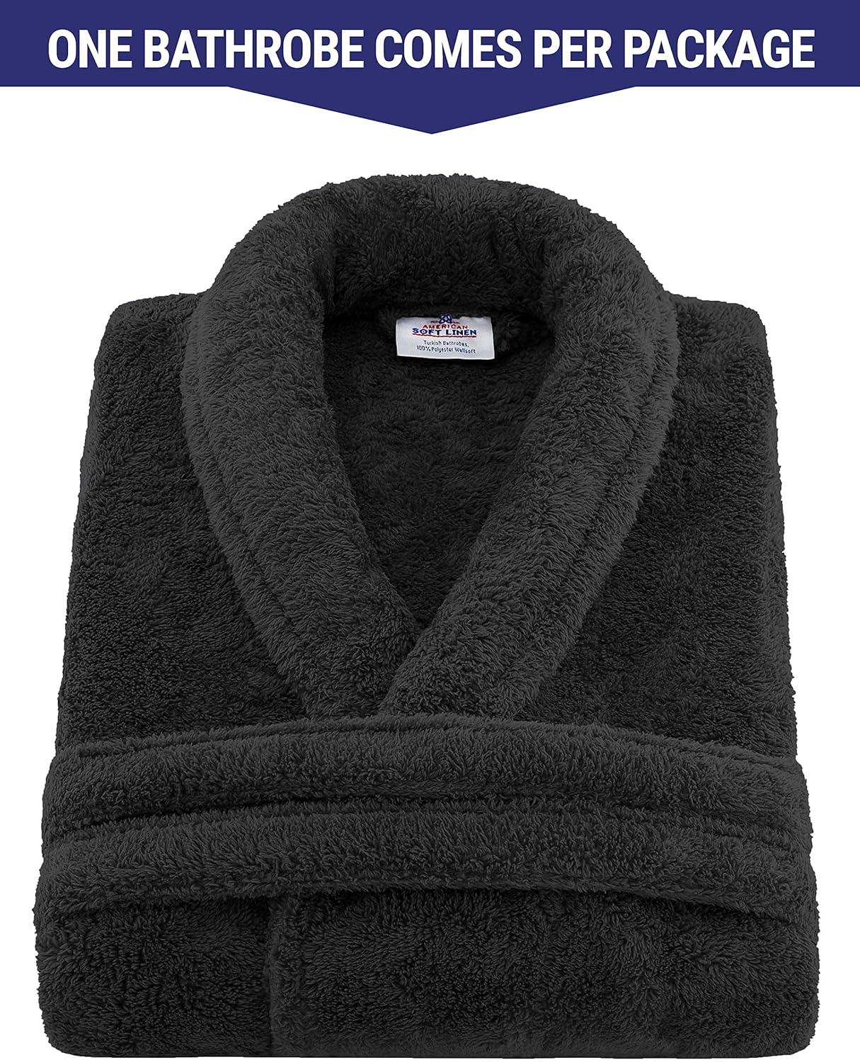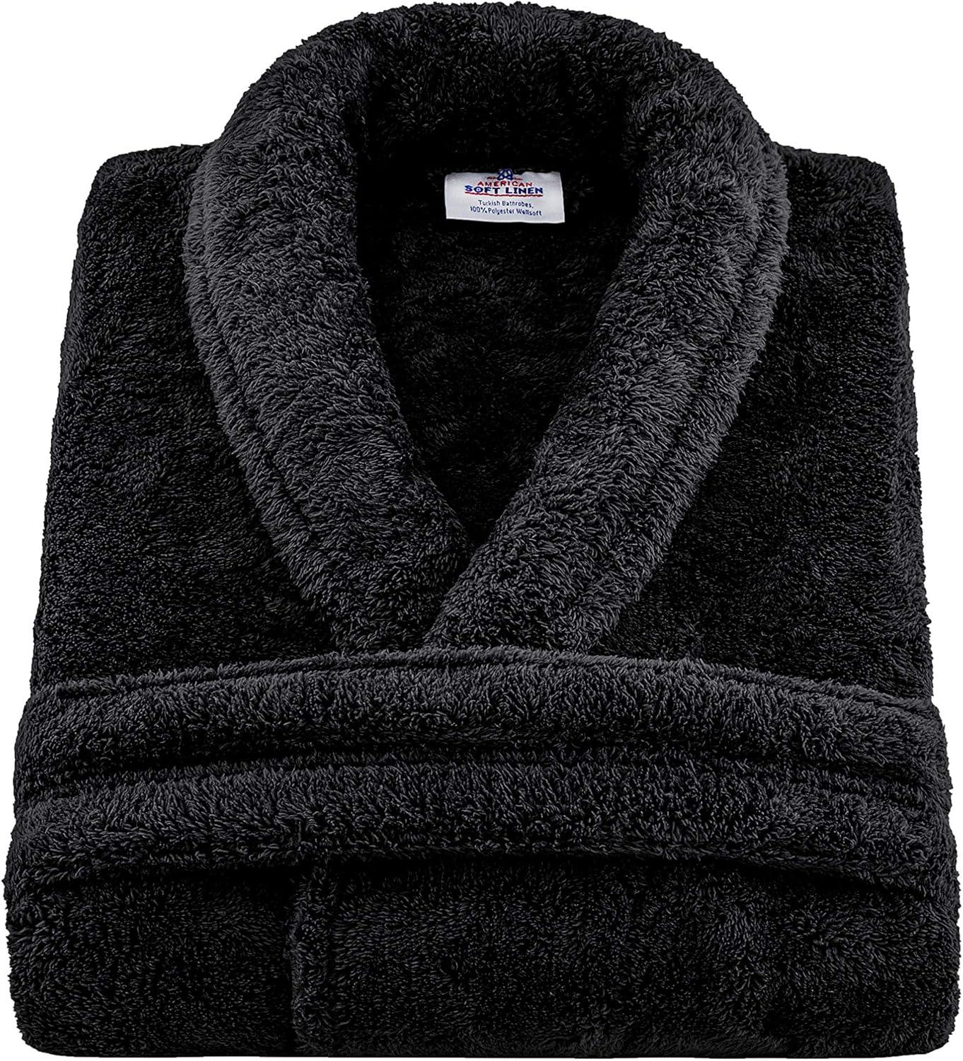 American Soft Linen Warm Fleece Robe, Mens and Womens Robe Fuzzy, 1 Piece Unisex Plush Adult Bathrobe for Bathroom(Black)